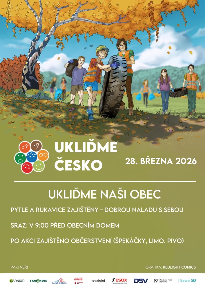 Společný úklid veřejných prostor. Po akci bude opékání špekáčků na místním hřišti.